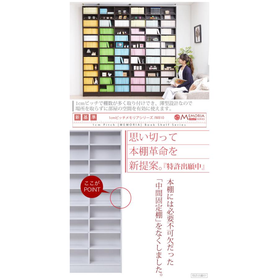 ■商品説明 1cm間隔で棚板が設置でき、固定棚の無い画期的な仕様により、従来よりも自在な棚割りを可能にしました。ラックの中にデッドスペースを作らず、より多くの物が収納できます。薄型だからリビングだけでなく廊下や、狭いスぺースでも収納を確保できます。シリーズで揃えればまるで図書館 。ミドルなサイズの薄型幅81はリビングに最適■本体サイズ [外寸]幅81.0×奥行16.5×高さ180.5cm■組立時間(目安)(大人2人) お客様組立(45分)■キーワード 本棚 コミック コンパクト スリム ボックス ラック リビング 奥行 15 17 20 雑誌 収納 縦長 大容量 大量 薄い 薄型 漫画 マンガ 木製 隙間 スキマ 棚 書棚 オープン棚 壁面 壁面収納 本棚 文庫本ラック cd dvd 漫画 マンガ 文庫本 収納 薄型ラック 薄型 薄い 本棚 棚 幅80 オフィス SOHO 収納力 仕切り ワイド 新生活 一人暮らし 1cm単位 1cmピッチ 棚 調節 出来る
