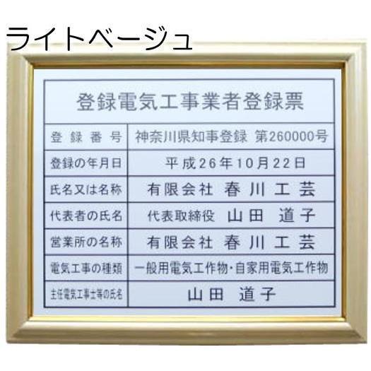 登録電気工事業者登録票 ライトベージュ額入り・板面はホワイト /登録電気工事業者登録票 お洒落な 登録電気工事業者登録票 額入 登録電気工事業者登録票