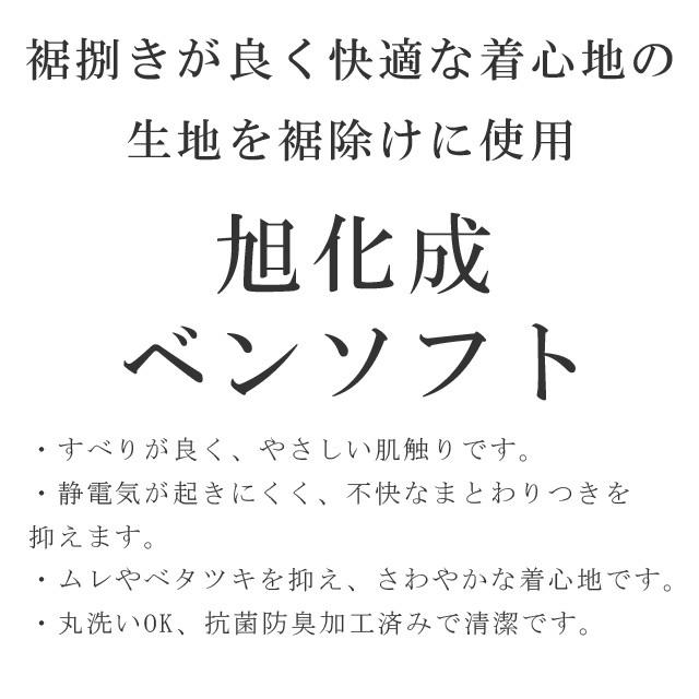 裾捌きが良く快適な着心地で定評のある「旭化成 ベンソフト」生地を裾除けに使用。