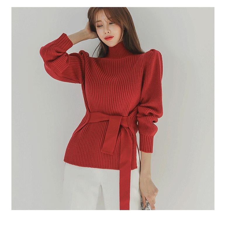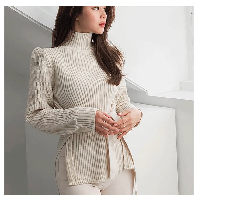 ウエストマークハイネックニット トップス セーター l 長袖 ハイネック ウエストマーク 大人可愛い シンプル カジュアル おしゃれ お洒落 大人可愛