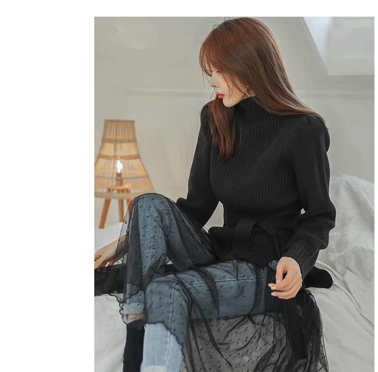 ウエストマークハイネックニット トップス セーター l 長袖 ハイネック ウエストマーク 大人可愛い シンプル カジュアル おしゃれ お洒落 大人可愛い 大人女子 無地 秋 冬 10代 20代 30代 レディース 学生 通学 デート お出かけ 女子会 休日 着回し 普段使い 重ね着 韓国 韓国系 オルチャン サイズ S M L XL 黒 ブラック ベー"}