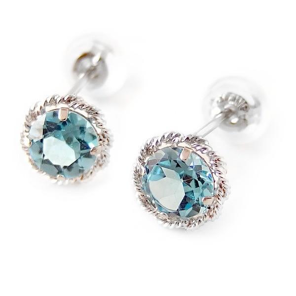ピアス ブルートパーズ K14 ホワイトゴールド スタッド シンプル シリコン製ダブルロックキャッチ仕様