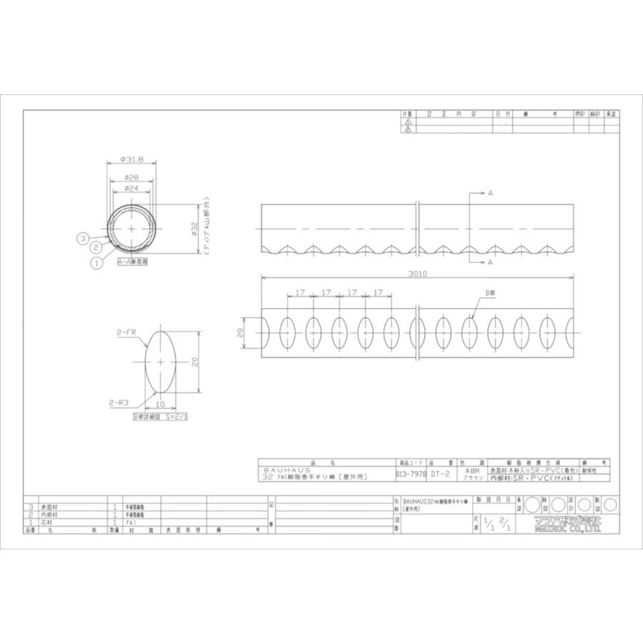 【マツ六 ステンアクアレール・32アルミ樹脂手すり棒・ディンプル付[屋外・屋内用]】※ブラケットピッチ800mm以内※浴室用としてまた支柱としては使用できません。※手すり棒は定期的にやわらかい布で拭き清掃してください。※ステンアクアシリーズは、ステンロストワックスシリーズ等、他シリーズの部材とは併用できません。品番:DT-2長さ:3m重量:約2.6kg材質:上層/ウッドパウダー混合半硬質樹脂、中層/半硬質樹脂、芯材/アルミ色:木目Mブラウン入数:1本介護 diy リフォーム 手摺 外 おしゃれ 部材