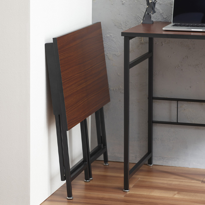 機能的でシャープなデザインの中でも落ち着いた雰囲気が漂う折りたたみデスク。キズのつきにくいメラミン化粧板仕様。▼ 製品サイズ約〔本体〕幅700×奥行400×高さ685mm〔折り畳みサイズ〕幅700×奥行60×高さ700mm▼ 材料〔本体〕MDF(18mm厚)メラミン化粧板貼り エッジ塩ビシート貼り(ブラック)〔フレーム〕スチール(□18mm)粉体塗装(ブラック)▼ 特徴・機能◇折り畳み式▼ カラーブラウン▼ キーワード折りたたみデスク テレワーク 机 幅70 奥行40 高さ68.5 折りたたみ 折り畳み 作業台 デスク テーブル サイドテーブル 補助テーブル stork ストーク フォールディングデスク 勉強 仕事 パソコン 作業 在宅勤務 リビング 一人暮らし 新生活