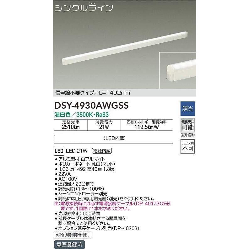 期間限定特価 大光電機 ダイコー LED間接照明 L=1492mm 調光 天井・壁・床付兼用 DSY-4930AWGSS メーカー直送
