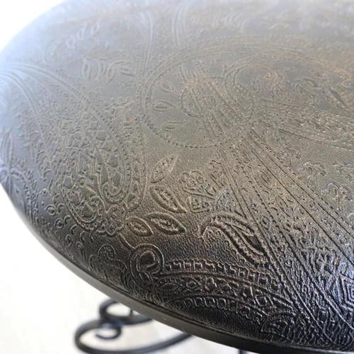 黒のレザー張り(合皮)にペイズリー柄の模様が描かれたとてもオシャレなスツールです。玄関にさりげなく置いたり、化粧台の椅子として使ったり用途は色々です!重さも軽く持ち運びも簡単♪作りもとても丈夫ですよ。★再入荷・定番商品 ★おすすめ人気商品"} 沖縄、北海道、離島は後ほど連絡させて頂きます。