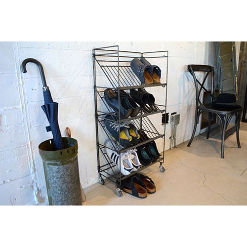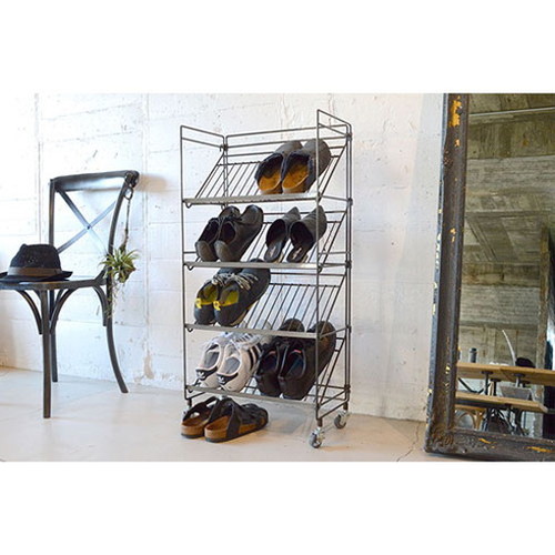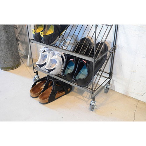 【商品特長】玄関のインテリアを印象づけるインダストリアルなワイヤーシューズラック。大人用の靴が8足収納できます。一番下の棚下には、サンダルなども入れられて便利。キャスターが付いているので、掃除の際の移動も簡単です。【仕様】サイズ:約W514×D264×H961mm重量:約6.6kg材質:本体:スチール(粉体塗装)※鉄本来の風合いを残すため、クリア塗装で仕上げております。キャスター:エラストマー生産国:中国耐荷重:一棚あたり2kgトータル8kg