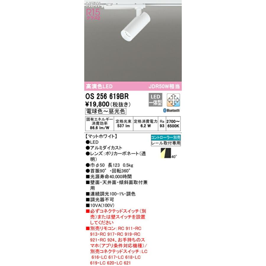 【決済・後払い決済】 高演色LED JDR50W相当 OS256619BR 電球色〜昼光色 2700〜6500K 消費電力6.2W Ra93 【マットホワイト】 ●LED ●ルミダイカスト●レンズ:ポリカーボネート(透明) ●巾φ50 長123 0.5kg ■光源寿命40,000時間 ■壁面・天井面・傾斜面取付兼用 ■連続調光100-1%・調色 ■調光器 ■必ずコネクテッドスイッチ(別売)または壁スイッチを設置してください ■リモコン別売:別売BT調光・調色リモコン居室CL以外用+別売コネクテッドスイッチ リモコン別売 レ-ル取付専用 その他 タスク_ワイドメーカーへのお問い合わせはコチラ →