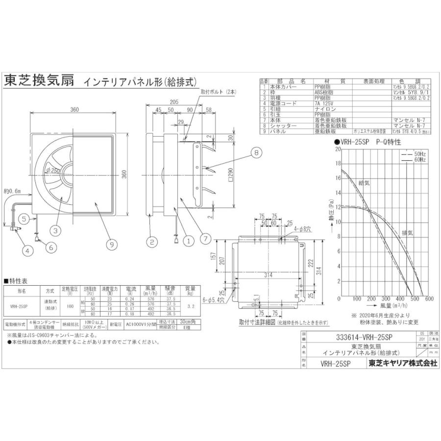 【同一ストア内で税別15000円以上ご購入で送料無料(沖縄・離島など一部地域は除く) 】 換気扇 日本キヤリア 東芝 一般換気扇 VRH-25SP 検索用カテゴリ259 【埋込300角】単相100V