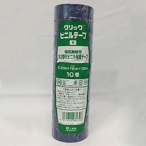 因幡電工 ケース販売 200巻セット ポリ塩化ビニル粘着テープ クリック 電気絶縁用 19mm×10m 青 クリックVT19×10アオ_200set