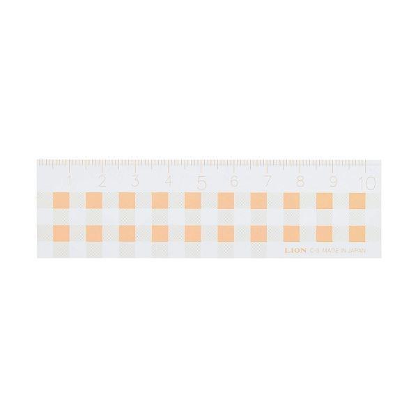 (まとめ) ライオン事務器 ギンガムチェック定規10cm オレンジ C-3 1本 〔×50セット〕