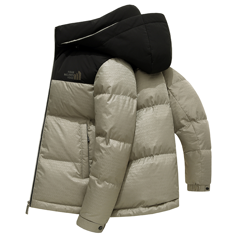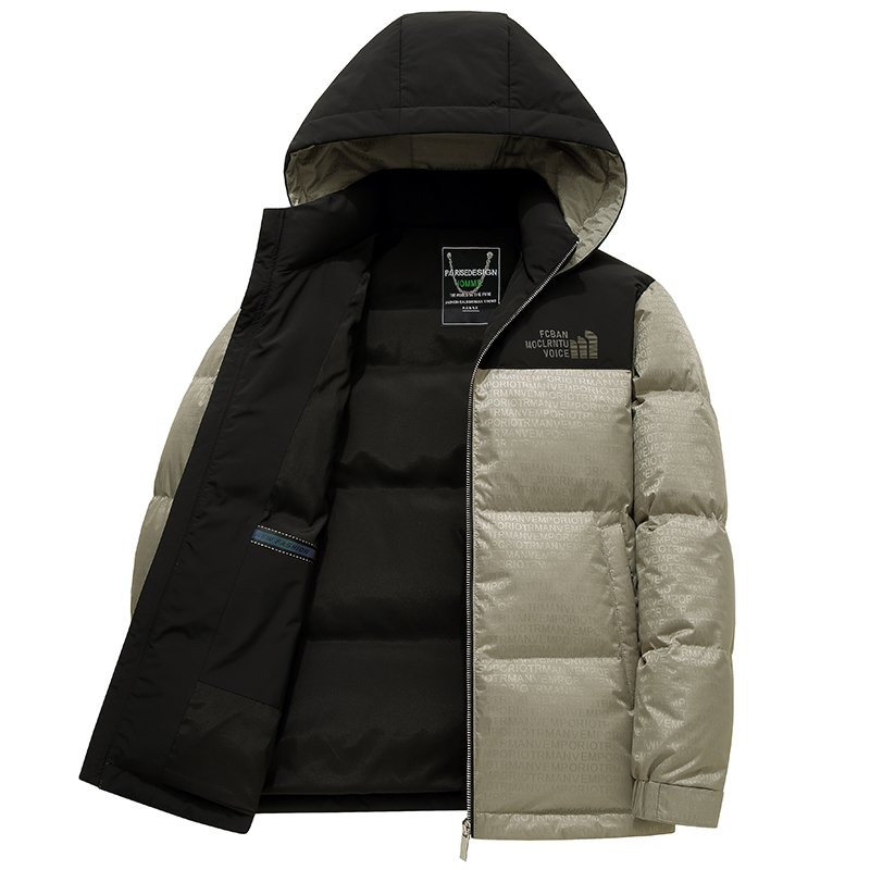 ダウンジャケット ダウン メンズ カラー配色 切り替え フード取り外し可能 英文字プリント 柄物 ショート丈 おしゃれ 暖かい 防寒対策 保温 防風