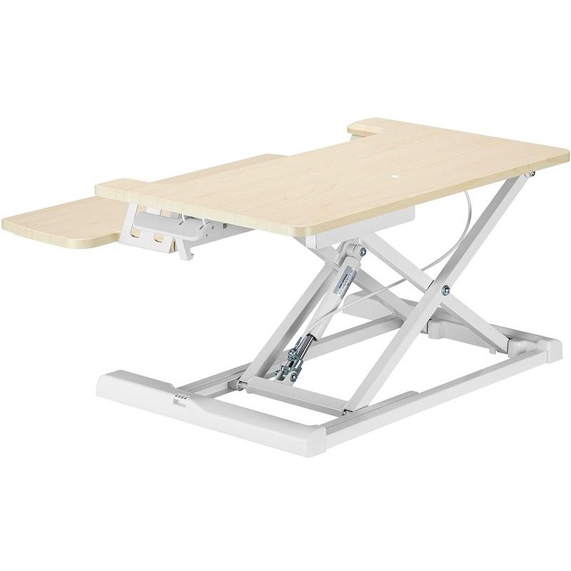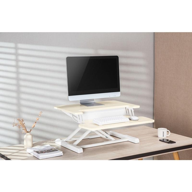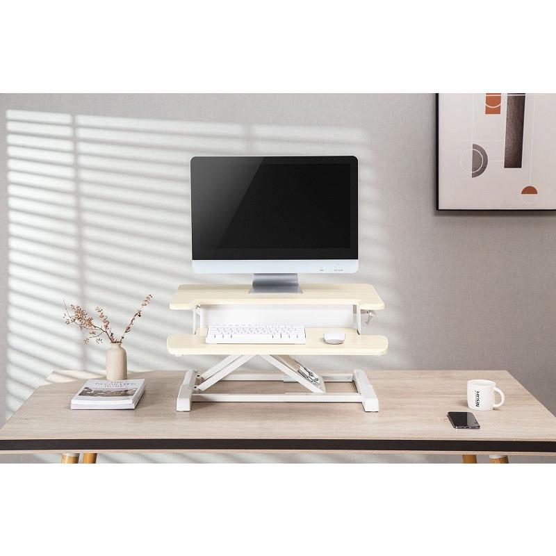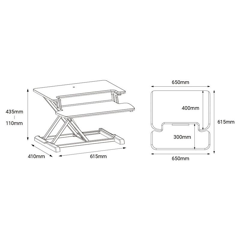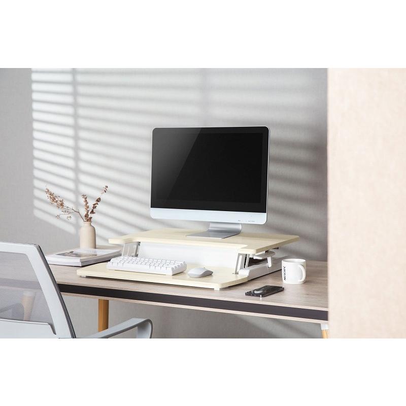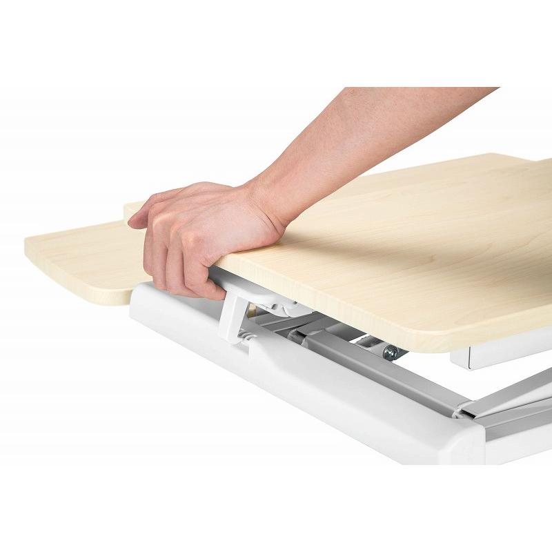 | 限られたワークスペースの中で立ったり座ったり、状況に合わせてワークスタイルを選択できるDMM.make卓上昇降デスク。机ごと買い替える必要がなく、いつものデスクに置くだけ。ワークスペースに馴染みやすいシンプルなデザインです。天板とキーボードトレーに段差を設けることで、視線をより高く保ちます。ガス圧式で無段階の昇降機能により、楽に高さ調整を行えます。キーボードトレイの奥にはマグネットの取り付けが可能です。・天板サイズ:約W650xD400mm・天板耐荷重:15kg・キーボードトレイ:約W650xD300mm・キーボードトレイ耐荷重:2kg・昇降幅:約110〜435mm(無段階)・昇降構造:ガス式・本体サイズ:約W650xH435xD615(H110〜435mm 無段階調整)・本体重量:約10.3kg |