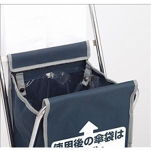 | 特 長 | ■ゴミ入れ付きで使い勝手の良い傘袋スタンドです。 ■女性でもラクに持ち運べる約2.8kg 〇折りたたみ式 〇袋止め付 〇傘袋は別売です。 〇傘袋は一度に約1000枚まで掛けられます。 〇中袋には専用中袋Lが使用できます。 〇市販の45L用ポリ袋が使用できます。 ●特許登録済 |