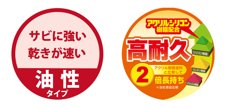 光沢が優れ、トタンのサビに強い油性タイプ。