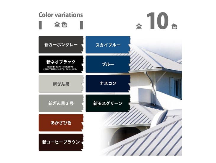 トタン、スレート瓦、新生瓦(カラーベスト・コロニアルなど)、セメント瓦、鉄部、木部。