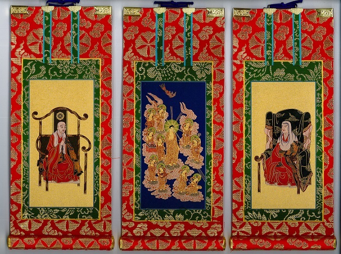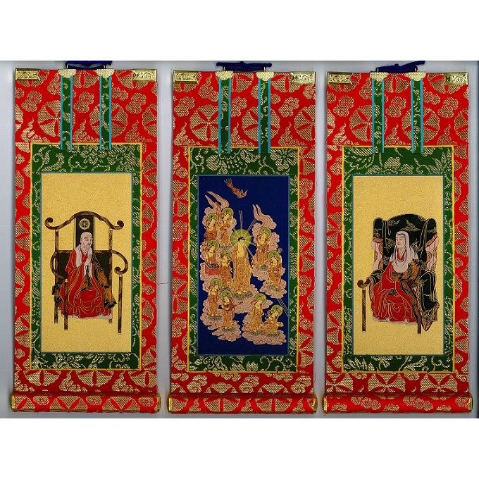 掛軸 融通念仏宗 50代 赤表装 3枚セット 仏具 掛け軸 上仕立 仏具セット
