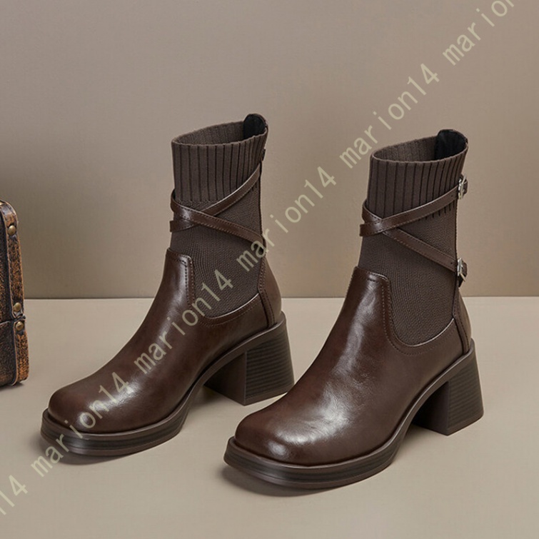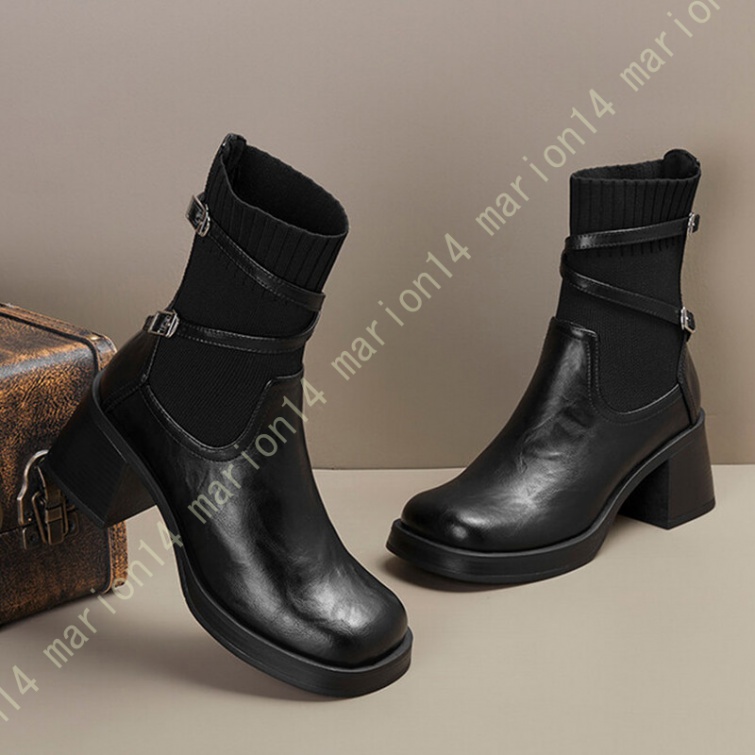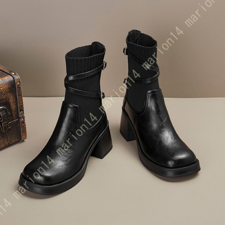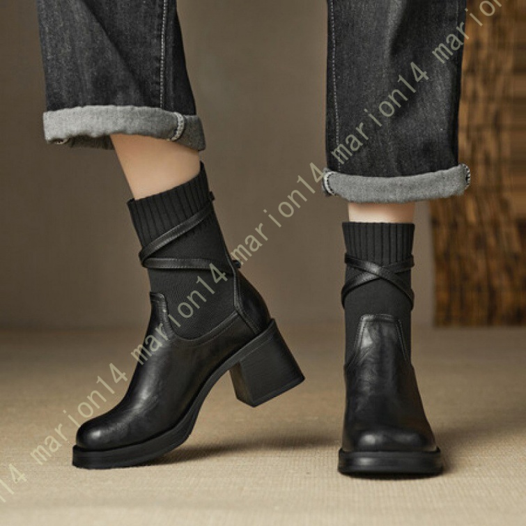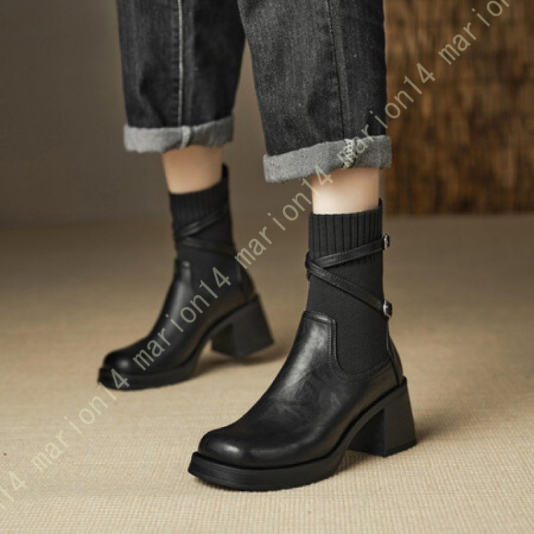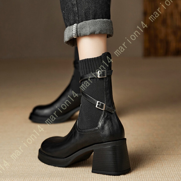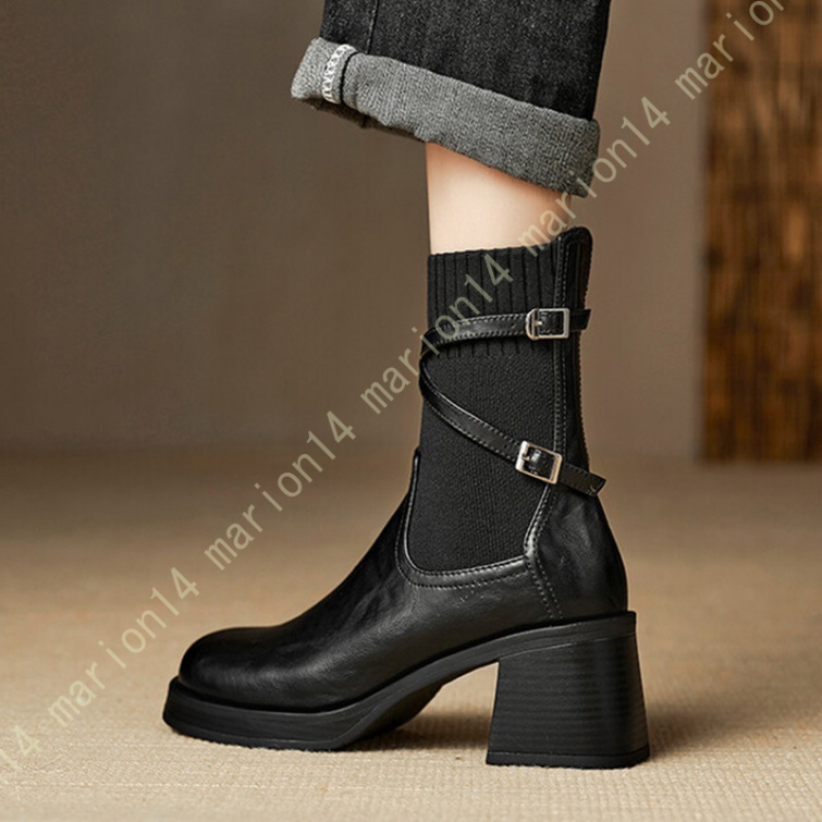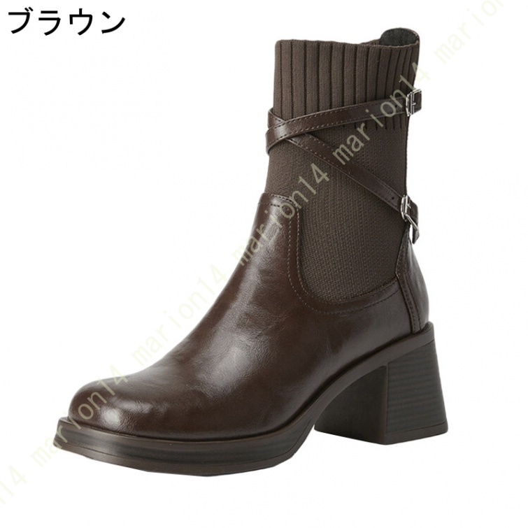 ショートブーツ ニットブーツ サイドゴアブーツ 厚底 ラウンドトゥ レディース 履きやすい 歩きやすい 大きいサイズ 小さいサイズ チェルシーブーツ