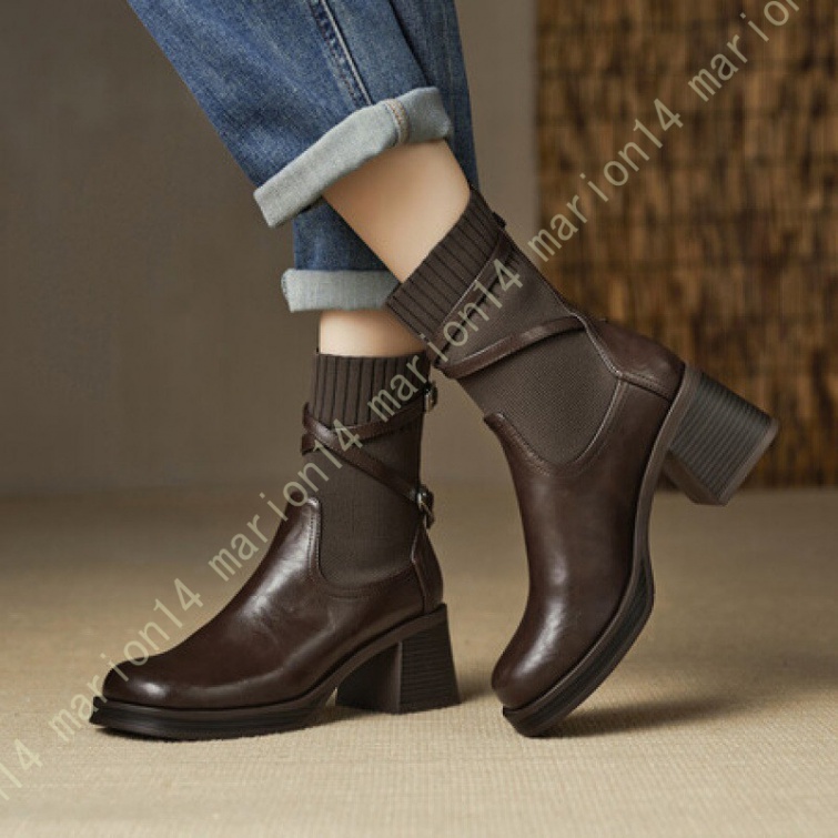 ★★商品の説明★★【素材】:牛革【ソール】:ゴム【ヒールの高さ】:約6.5cm【筒丈】:約17cm【ブーツ筒まわり】約23cm【滑り止め】靴底はしっかりした凹凸が入っているので、グリップ力が良い、濡れた地面でも滑りにくく気楽に履けます。【幅広いコーデに合う!】スカートに合わせてガーリーにも、パンツに合わせてマニッシュにもなる、何に合わせてもおしゃれに決まるアイテムです。【10代から50代まで】SHOES では、オシャレな若い女の子から大人女子まで、幅広い女性のお客様にご愛用いただいております。【ご注意ください】商品の撮影環境や、ご覧になる際のパソコン環境により多少差異があることをご了承ください。※サイズは若干な誤差がある場合もあります。※製造過程での傷・汚れ、また入荷時の箱つぶれなどがございますので、ご理解の上ご購入くださいませ。※何か問題があれば、ぜひメールで連絡してください。"}