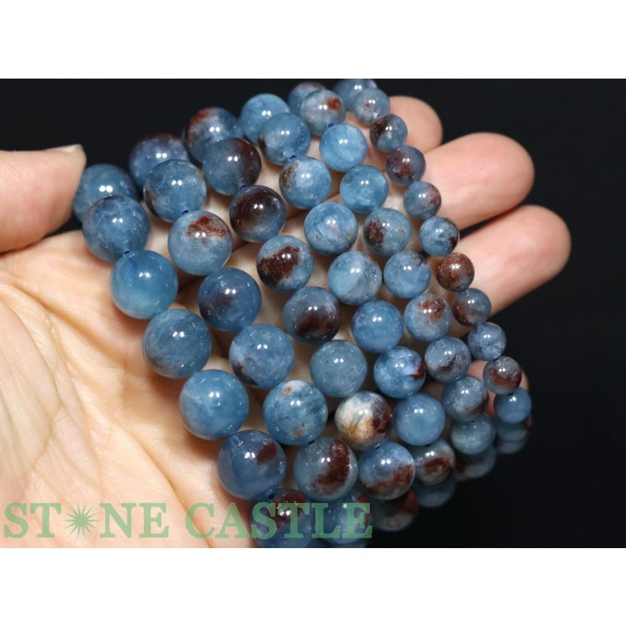 石流通センター 高品質 天然石 ブレスレット ヘマタイトインアクアマリン (約9〜9.5mm) パワーストーン"} こちらのブレスレットはアクアマリンの内包物としては珍しいヘマタイトが内包されています。