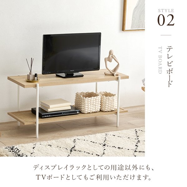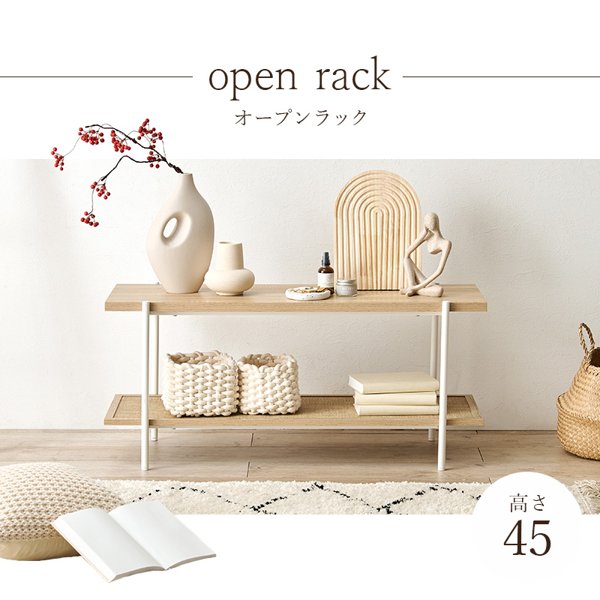 ラタン調の編み目で仕上げた棚板がアクセントとなり、おしゃれなオープンラック。テレビ台としても使用できます。配達業者を指定いただくことはできません。北海道/沖縄/離島のお届けに別途中継料金が発生します。※別途送料が発生する場合は後ほどご連絡させていただきます。当店は正規店です。タイミングによっては在庫切れの場合があります。"}