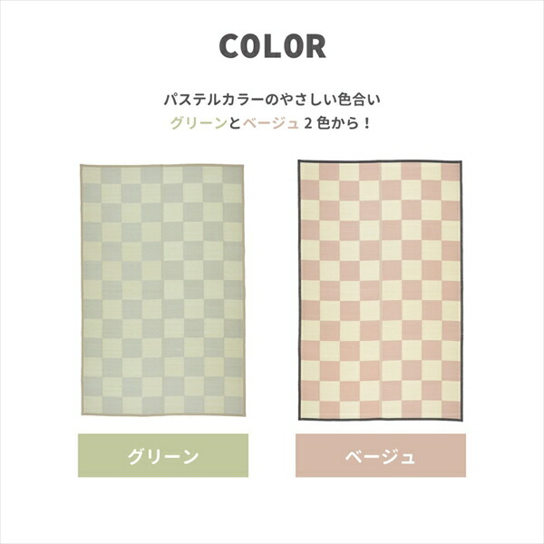 水や汚れに強い!見た目はまるでい草のようなPP素材の柄上敷き。抗菌加工付きで、細菌の増殖を抑制!お子さまやペットのいるご家庭も安心してお使いいただけます。PP素材は水洗いできるので夏に海水浴などの休憩所等でもたびたび見かけますが、実は寒い東北ではビニール管内の空気層の保温効果を利用してあたたかく過ごすために冬に敷き詰めて使う家庭もあるそうです。昔ながらの和風テイスト柄で、懐かしい雰囲気が作れますよ。新調した畳や汚れた畳の上に敷き詰めたり、ラグとして使ったり、海水浴など室外でもお使いいただけます。商品名:PP柄上敷き「倉間」江戸間8畳カラー:ベージュ/グリーン生産地:中国素材:ポリオレフィン系複合樹脂 抗菌加工四方縁備考:水洗いOK■送料:全国無料※北海道・沖縄・離島へのお届けは別途送料が必要になりますので、事前にお問い合わせください。81947280 81947380 お手入れ簡単 上敷き 和風PPペット 清潔 萩原"}