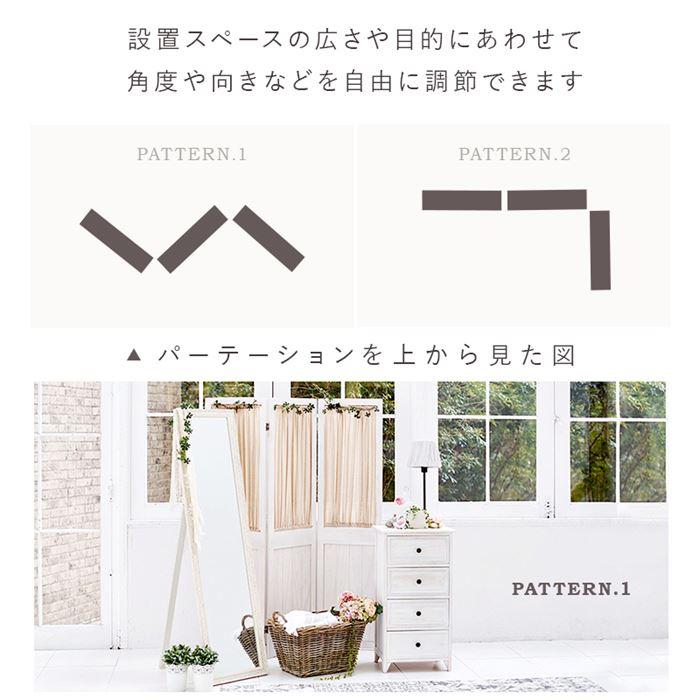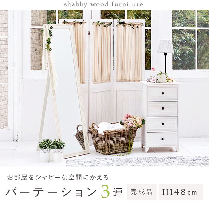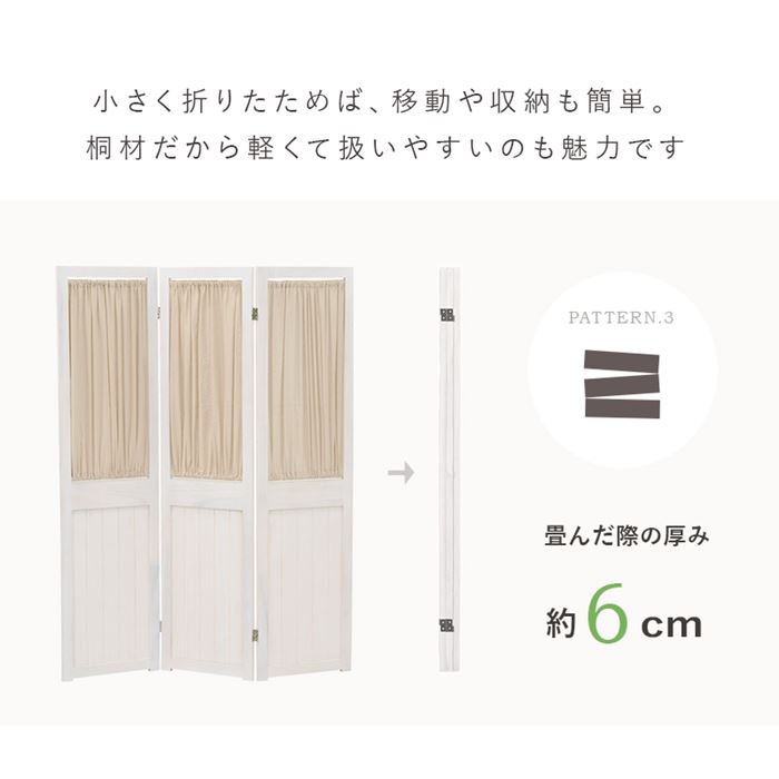 間仕切り 衝立 パーテーション 通販 MS-5413AW シャビーウッドファニチャー ついたて パーティション 部屋 仕切り 目隠し 折りたたみ 3連 カーテン
