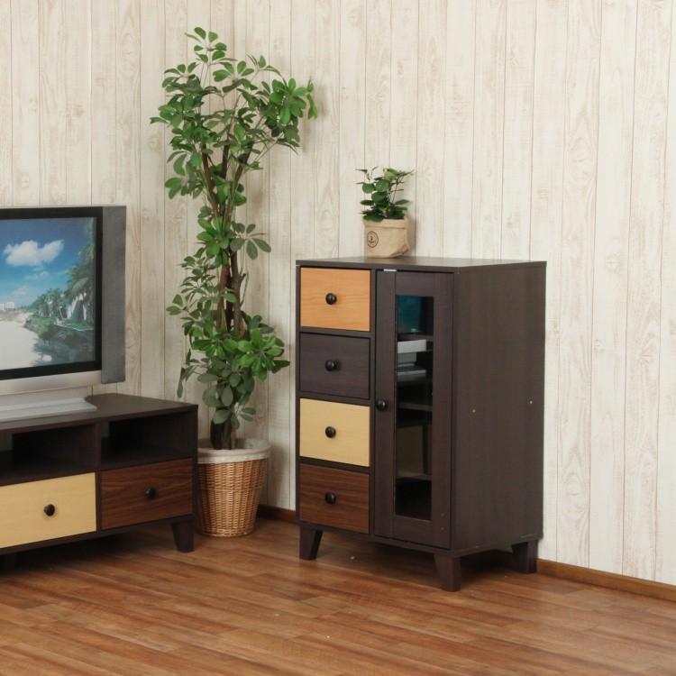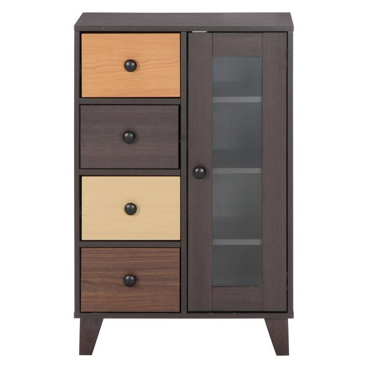 ウッドグラデーション キャビネット 引き出し 4段 脚付 カラフル 飾り棚 デザイン ボード チェスト カップボード ラック 収納 送料無料