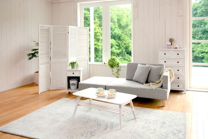 間仕切り 衝立 パーテーション 通販 MS-5913AW シャビーウッドファニチャー ついたて パーティション 部屋 仕切り 目隠し 折りたたみ 3連 ルーバー 室内