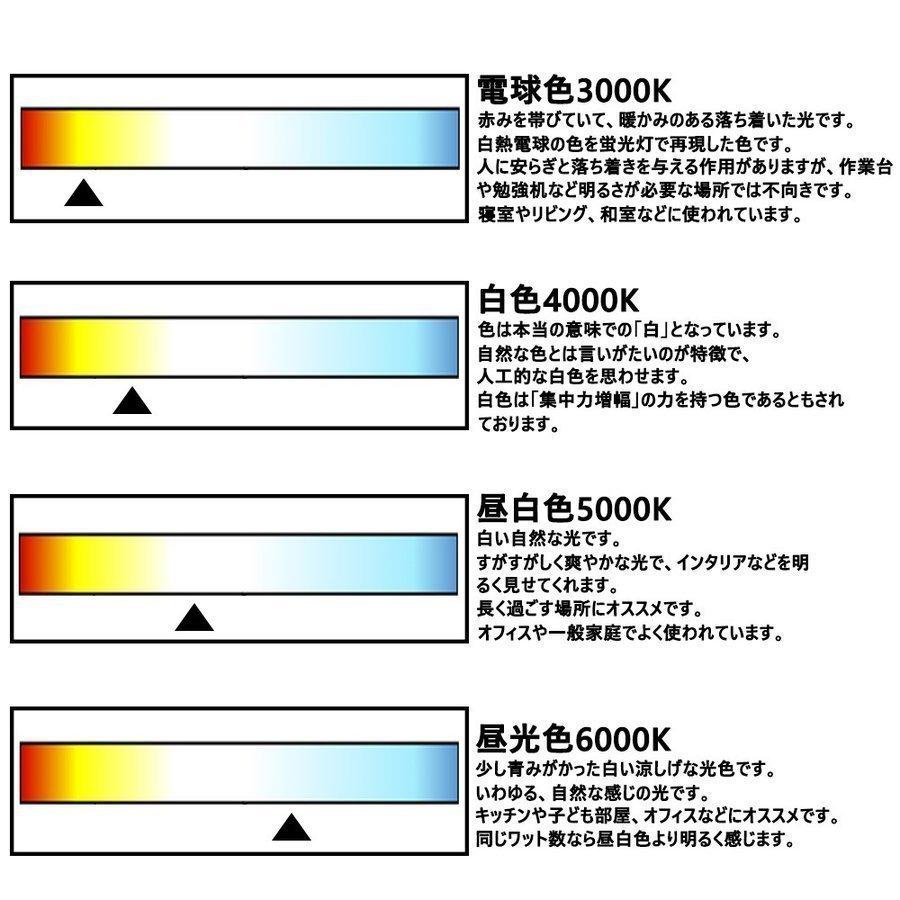 電球色3000K/白色4000K/昼白色5000K/昼光色6000K