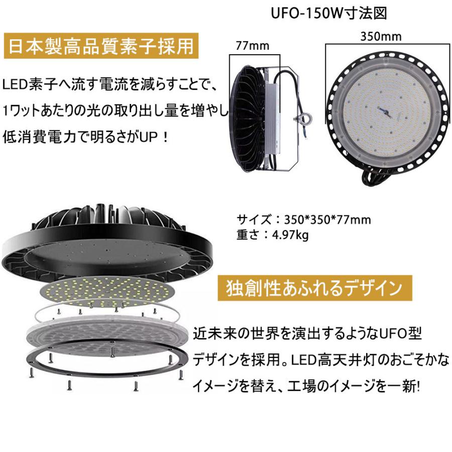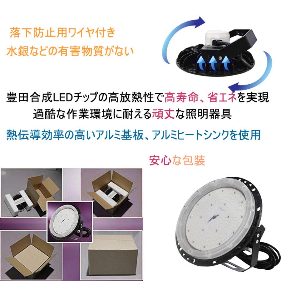 LED高天井灯 UFO型 LED高天井照明 150W 24000LM 1500W相当 IP65屋内/屋外兼用 角度調整可 工場 倉庫 高天井 ハイベイ作業灯 落下防止用ワイヤ付き 昼光色
