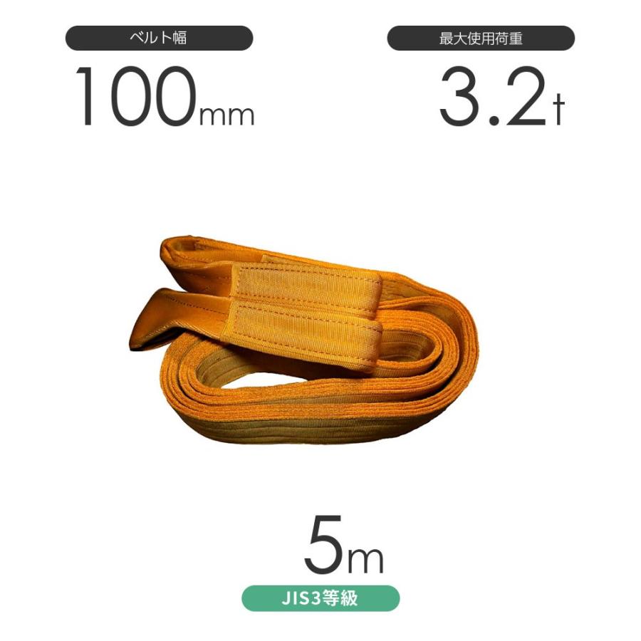 国産ポリエステルスリング AYスリング 両端アイ形(E型)幅100mm×5m 使用荷重:3.2t 黄色 ベルトスリング