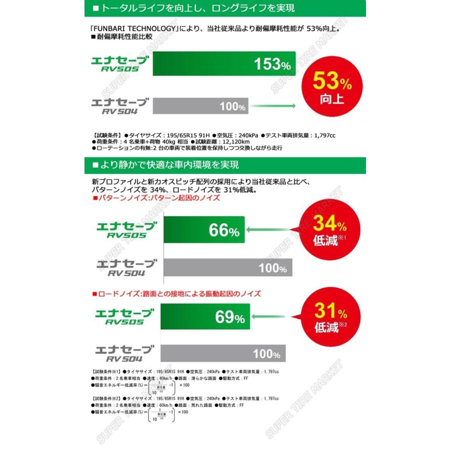 DUNLOP ENASAVE RV505風や重さにふんばりが効く ふらつきにくく快適なミニバン専用タイヤエナセーブ RV505は新開発のふんばりテクノロジーを採用することで多人数乗車でのカーブ時や不意な横風により発生するミニバン特有のふらつきを抑制し耐ふらつき性能を 19%向上させ安定した直進 コーナリング性能を実現しましたまた 耐偏摩耗性能を 53%向上させロングライフも実現しています さらに新プロファイルと新カオスピッチ配列の採用により静粛性能を高めることで 静かで快適な車内環境を実現していますタイヤが安い 激安タイヤ16インチ 215/60R16ミニバン専用 16インチ 215/60R16ダンロップ ENASAVE RV505 16インチ 215/60R16低燃費タイヤ エコタイヤ 16インチ 215/60R16215/60-16 215-60-16 215/60/16