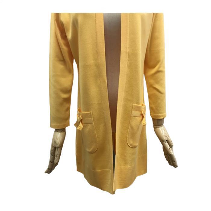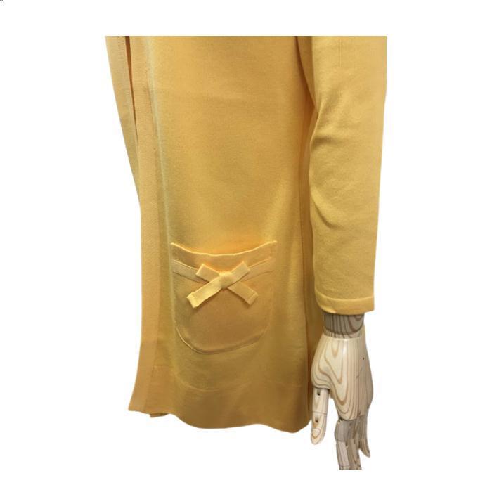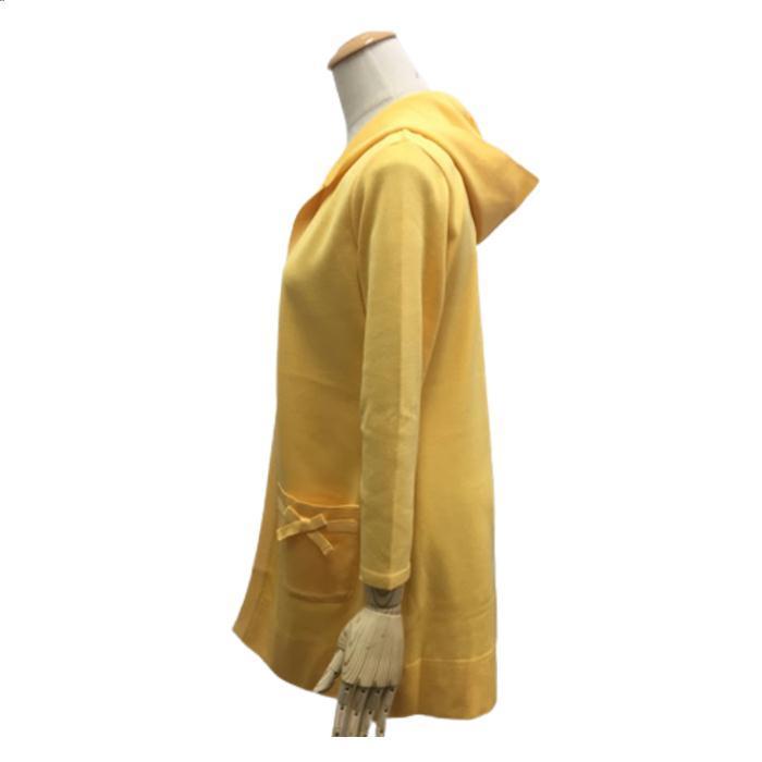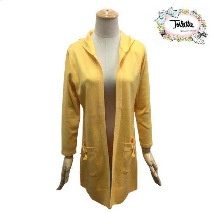 トワレ toilette フード付き ロングカーディガン リボンポケットイエロー M L サイズ1 サイズ3 大人かわいい服 ディリーウェアー
