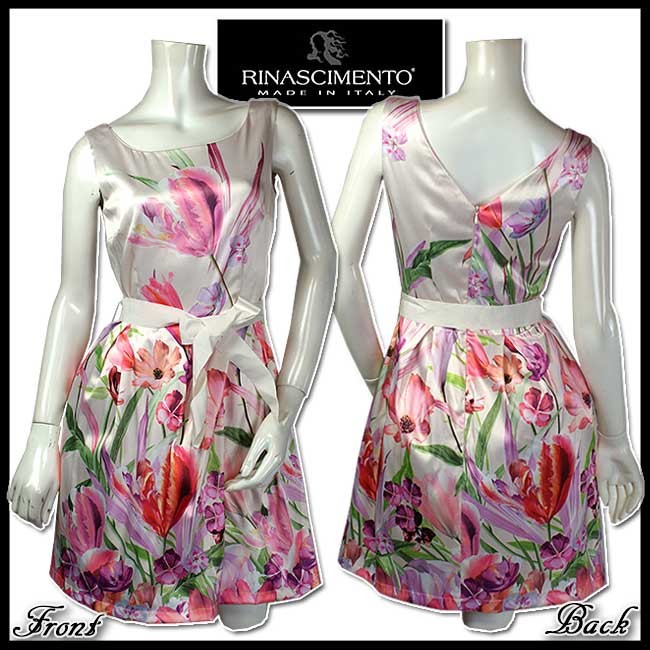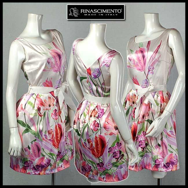 OUTLET イタリア "RINASCIMENTO" リナシメント チューリップ コスモスのプリント ワンピース サイズSとM 当初価格税抜24259円