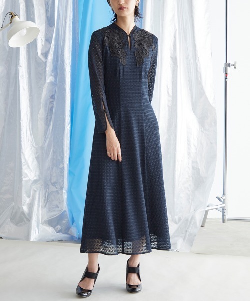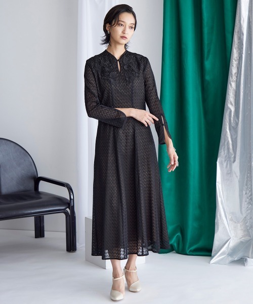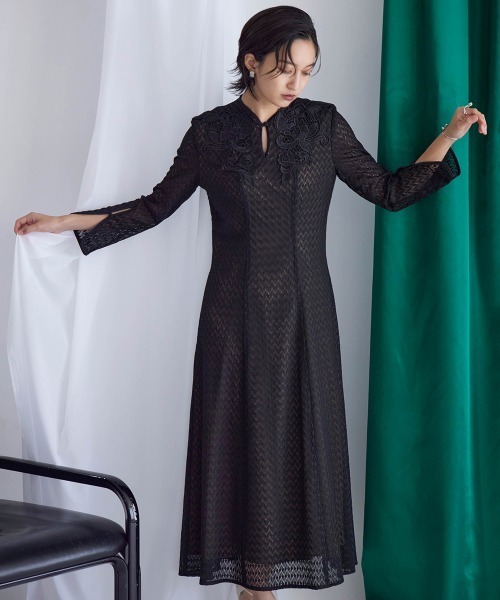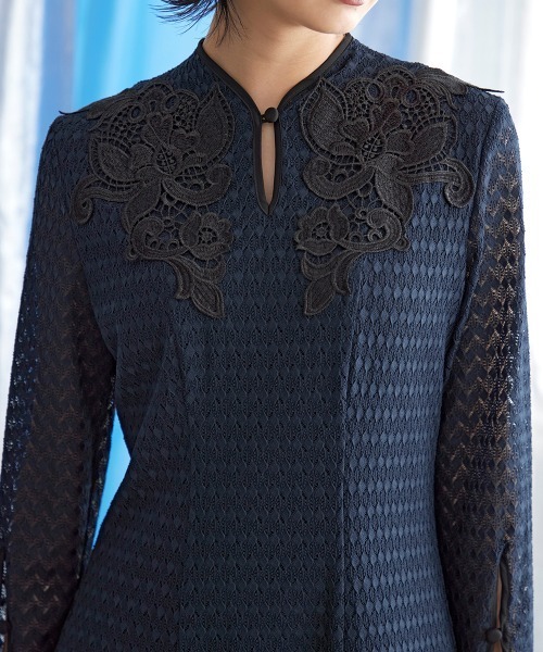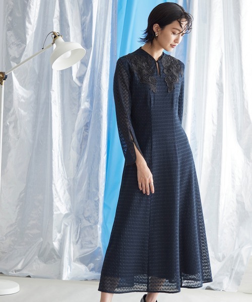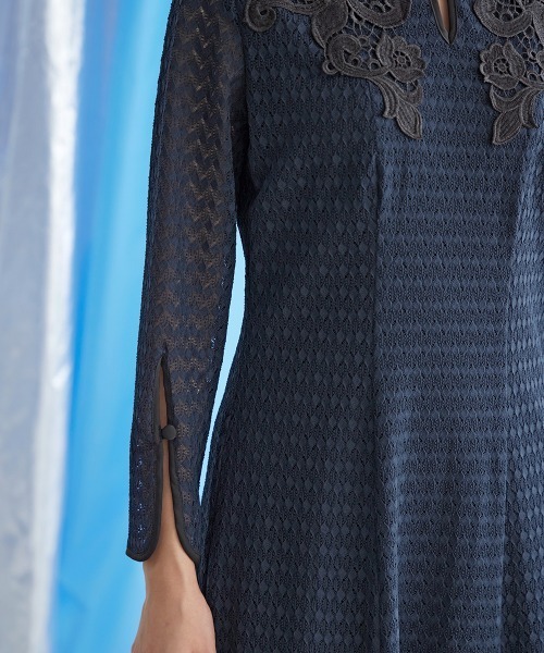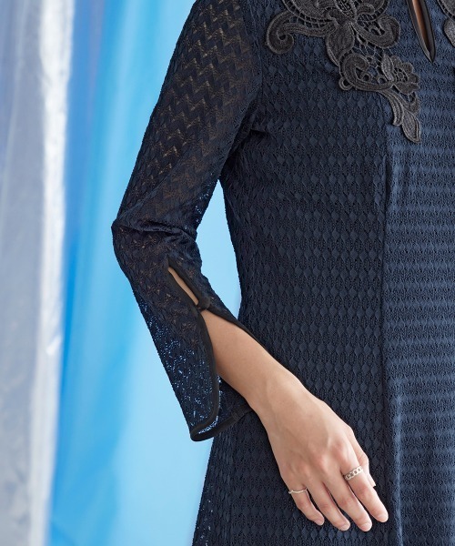ドレス、結婚式、二次会、謝恩会、同窓会、成人式、女子会、1.5次会、食事会、よそいき、特別な日、デート、おでかけ、七五三、お宮参り、オケージョン、フォーマル、ワンピース、衣装、式典、演奏会、発表会、冠婚葬祭、入卒、入学式、卒業式、入園式、卒園式、学校行事、参観日、お受験、顔合わせ、ハレの日、女性、ママ、母、Callarus、カラルス、モード、自由、縛られない、きれいめ、汎用性、着回し、総レース、モチーフ、裏地配色、袖スリット、フロントボタン、20代、30代、サイズ、レギュラー、大きいサイズ有、普段使い、クール、デザイン、