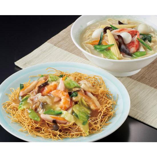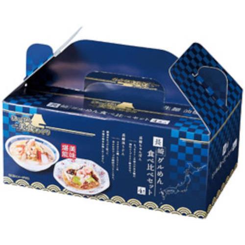 長崎を代表するグルメメニュー。ちゃんぽん麺と皿うどんの手提げボックス入りセット。内容・長崎ちゃんぽん:麺80g×2・スープ×2・長崎皿うどん:麺40g×2・スープ×2賞味期間:製造日より40日化粧箱入(225×130×95mm)日本製入数:27※受注日より休祝日除く3日以降の出荷"}