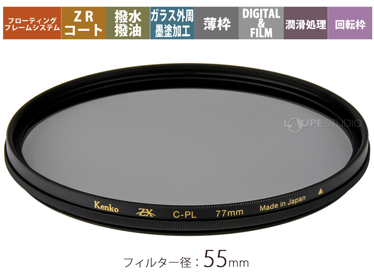 レンズフィルター カメラ デジタルカメラ デジカメ フィルター PL[円偏光]レンズフィルター ZX C-PL[薄枠] 55mm ケンコー kenko ケンコー・トキナー詳細