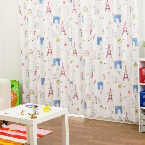 パリのシャンゼリゼ通りを思い浮かべるポップでかわいいプリントカーテン。
