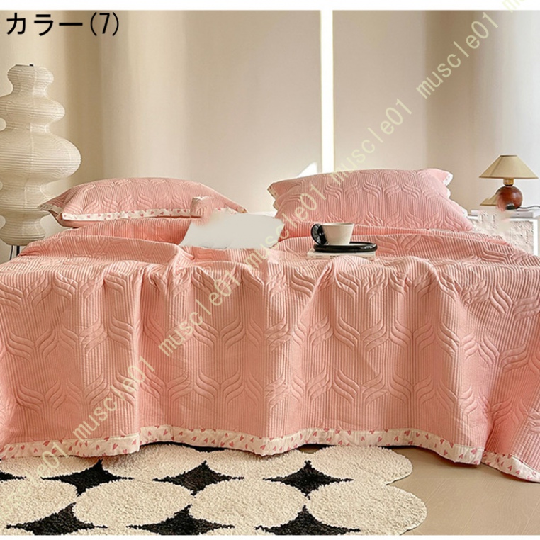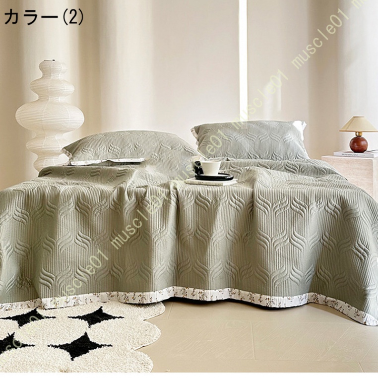 ベッドスプレッド おしゃれ ベッドカバー キルト ソファカバー マルチカバー 3点セット クイーン キング 綿100% 姫系 花柄 刺 寝具カバーセット