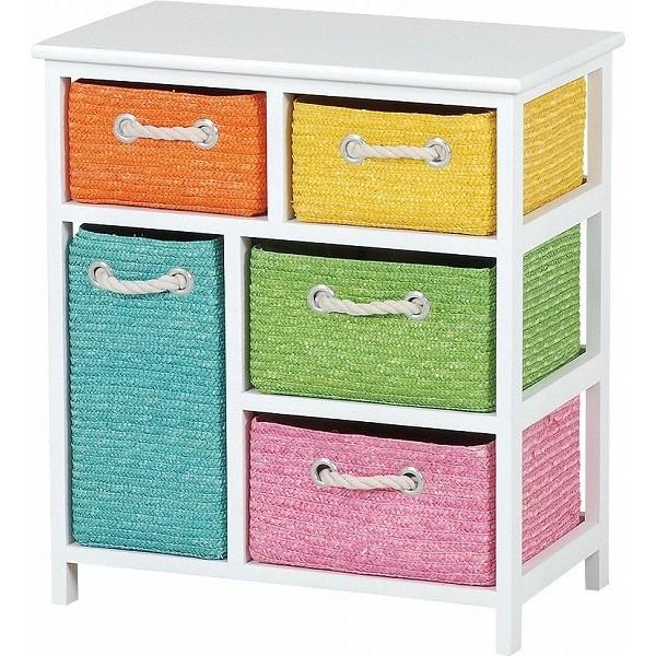 引き出し かご 収納 チェスト カラフル 可愛い"} 素材 主材:桐材、ストロー