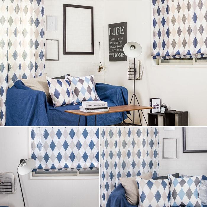 ネイビー×ベージュ、空色のようなブルー×グレーの可愛いハーリキンチェック■商品名:YH975クローネ▼サイズ:巾45〜100cm×丈50〜100cm■仕様:・2ツ山タック 1.5倍ヒダ仕様 or フラット仕様・裾8cmダブル仕上げ・共布タッセル付き(1枚につき1本)・アジャスターフック(1枚あたり)巾〜250cm・・・17コ■機能:ウォッシャブル(手洗い)■幅継ぎ:巾91cm以上は幅継ぎが入ります■付属品:・共布タッセル・アジャスターフックAタイプorアジャスターフックBタイプ└カートにてA・B選択制スカンジナビア,デザイン,北欧,輸入カーテン,レースカーテン,デザインカーテン,Bohoスタイル,ボヘミアン,ソーホー,民族,ボタニカル,マリン,シアー,スカンジナビアモダン,ブラック,ブルー,ネイビー,ひし形,ハーリキンチェック,市松格子