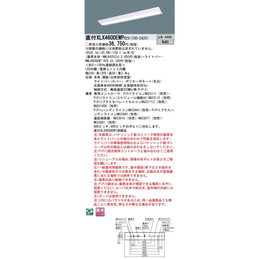 [法人限定] XLX460DEWP RZ9 パナソニック iDシリーズ 天井直付型 富士型 40形 PiPit 調光 一般タイプ 6900lm 白色 [ XLX460DEWPRZ9 ]