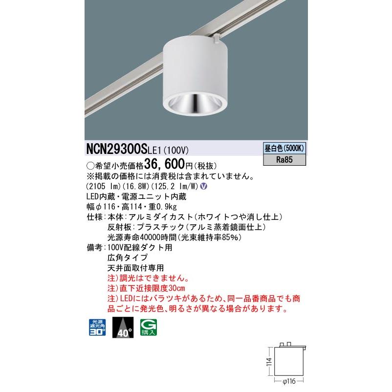 [法人限定] NCN29300S LE1 パナソニック スポットライト 天井直付 配線ダクト取付型 昼白色 小型シーリングライト 広角 光源遮光角30度 [ NCN29300SLE1 ]