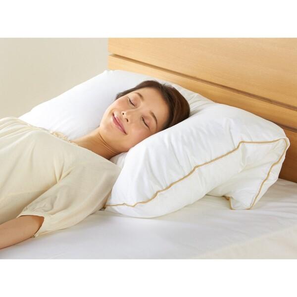 ■半身を包み込む特別サイズ 頭だけでなく肩甲骨から腰あたりまで大きく包み込み、優しくサポートしてくれるハーフボディサイズ(80×80cm)。欧州の高級ホテル仕様のサイズです。