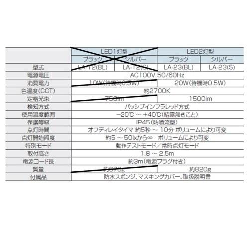 オプテックス:LEDセンサーライト 型式:LA-23(S)