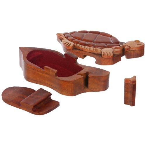 Handcrafted Wooden Animal Shape Secret Jewellery Puzzle Box - Turtle【並行輸入品】