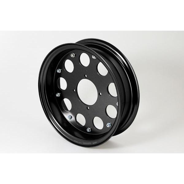 | タケガワ製10インチ用正立フロントフォークと12cmロングスイングアームまたは16cmロングスイングアームを装着した場合に、取り付け可能になる10インチアルミホイール。 アルミ素材により、バネ下荷重の低減・操作性を向上させます。アルミ材にアルマイト処理が施されいることで耐腐食性に優れ、アカラーアルマイトの美しさがカスタム車両を引きたてます。 |