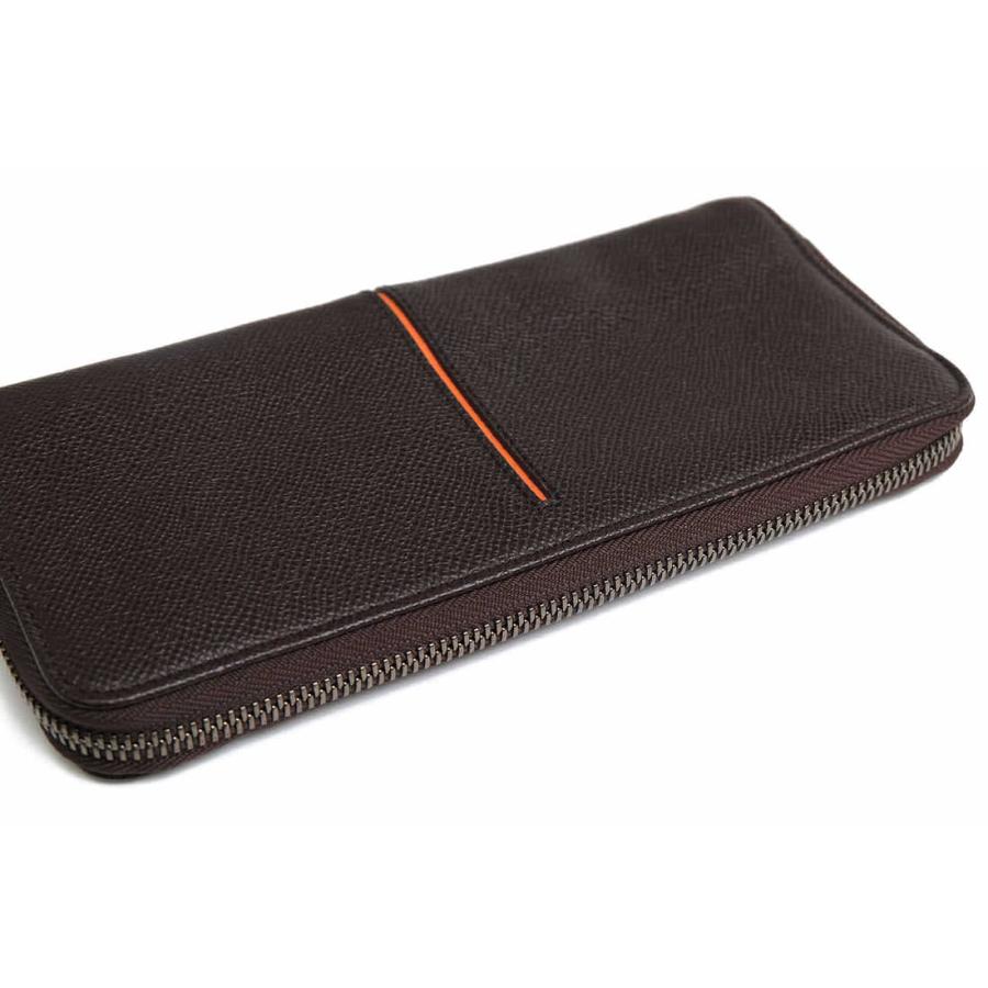 | スタイリッシュなボディの中央に刻まれたレッドラインが遊び心を感じさせます。素材には程良い艶感が大人の雰囲気を醸し出す型押しカーフスキンを使用。札入れと小銭入れを装備し、カードなど機能面でも、十分な容量を備えており、満足していただけるアイテムです。 |