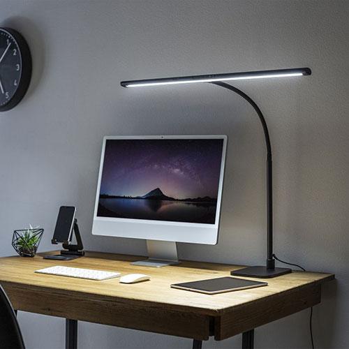 ※【重要!!】ご注文後の「お客様都合(品違い、サイズ違いなどの注文間違いや「イメージ違い」などを含む)」によるキャンセルやご注文内容の変更(カラー変更、配送先変更など)は固くお断りいたします。※ご注文は「クーリングオフ」の対象となりませんので予めご了承ください。(商品不良時の返品・交換は対応いたします)※お取り寄せから発送完了まで土日祝日を挟み、1週間程度かかる場合がございます。(お急ぎ対応は出来ません)※ごく稀に商品調達先の都合で、ご注文後に商品の欠品が判明する場合がございます。その際はご注文をキャンセルとさせていただきますのでご了承くださいませ。光源LED部も長く、広範囲に明るく照らすことが可能なベースタイプのLEDデスクライト。フレキシブルアームで角度調整しやすい。LED-DESK3BK